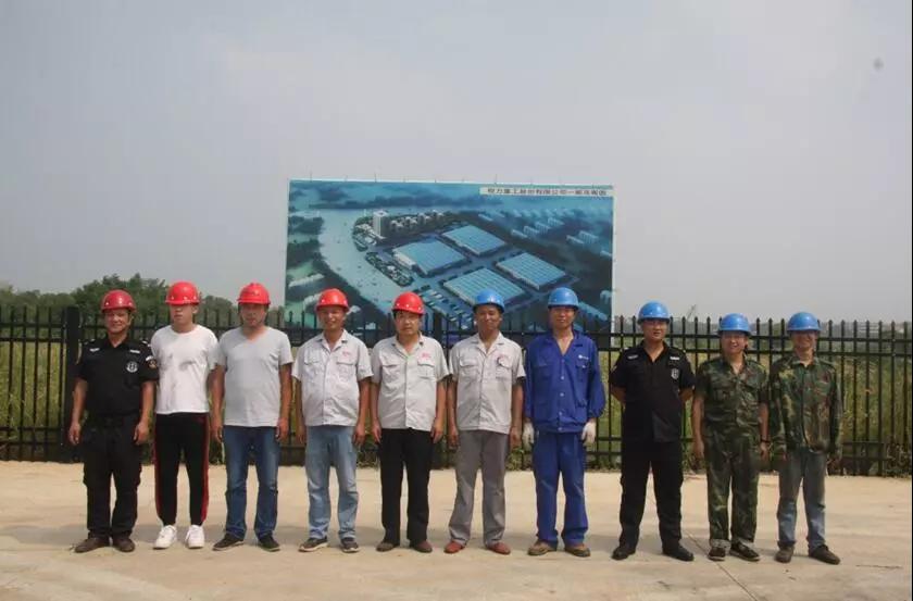 圖九:湖北程力重工消防隊員合影,左一為消防隊隊長高其榮、左三為副隊長吳繼國 |