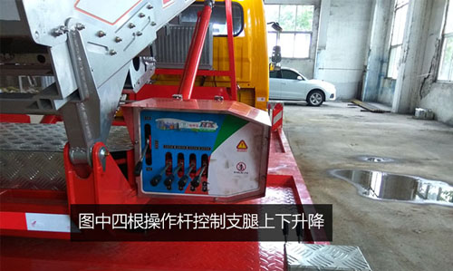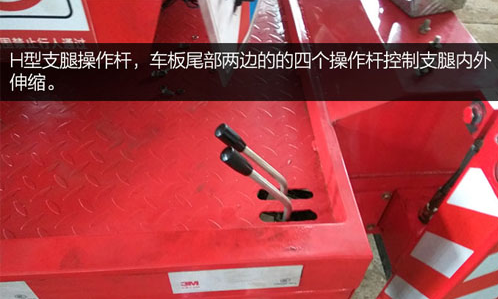 H型支腿操作桿,車板尾部兩邊的的四個操作桿控制支腿內外伸縮。