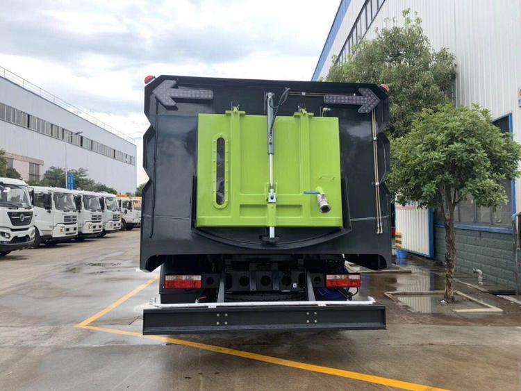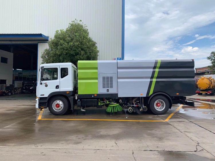 湖北程力東風D9洗掃車(國六) 底盤配置: 采用東風D9系列新款駕駛室,3950mm軸距,搭載國六(國VI)玉柴200馬力柴油發動機/康明斯210匹馬力柴油發動機,6檔變速箱,9T后橋,295真空胎,方向助力、斷氣剎、電動窗、中控鎖、ABS,原裝空調,GB7258新規。 湖北程力東風D9洗掃車(國六)上裝配置: 帶2個中置掃盤;中置超寬吸嘴;雙層吸塵筒; 康明斯170馬力副發動機;臺灣液壓閥;大力馬達;德國高壓水泵 (前沖/側噴/中噴/后噴霧)/側沖洗水槍/垃圾箱自潔裝置); 萬向高壓路沿清洗;威龍低壓泵(前沖),氣動球閥控制; 4mm不銹鋼垃圾箱;不銹鋼水箱;德國控制器;尾部箭頭燈; 機油、垃圾箱、水箱均帶防溢或低位報警裝置;倒車及洗掃狀態室內監視器; 多種語音提示;倒車自動保護、防傾倒垃圾翻車保護、檢修安全保護; 20m高壓沖洗卷盤;刷臂轉動機構使用德國進口高新耐磨工程隔套,免打黃油; 冷彎無縫液壓油管;運動控制器一鍵電腦控制。洗掃寬度3.5m;吸入粒度p110mm。 湖北程力東風D9洗掃車(國六)多方位圖片: